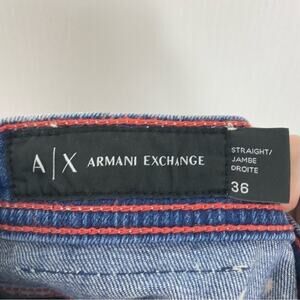 ARMANI EXCHANGE Custom Jeans Men 36 Blue Bleach Art Ripped Raw Hem Straight Edgy