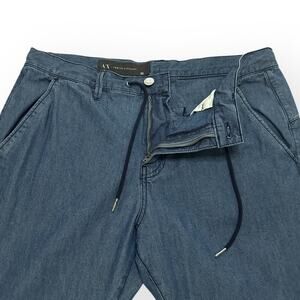 ARMANI EXCHANGE Drawstring Chambray Denim Joggers Jeans Stretch Slim Straight 36