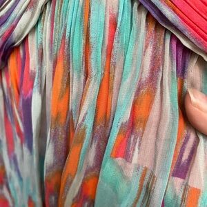 Pre owned excellent condition. Gorgeous watercolor dress. WOMENS size 10. Very tiny fabric pull under chest of dress very hard to notice.
