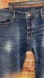 men's AJ Armani J06 slim fit denim. Dark blue with fading on thighs. Red stitching. EUC