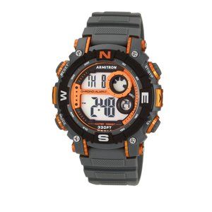Armitron Men's Digital Sport Watch, Grey and Orange, Resin Strap: