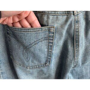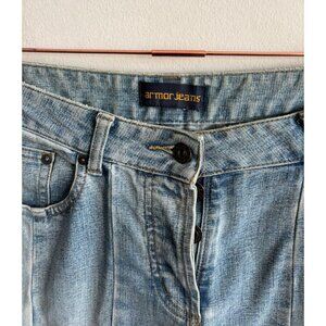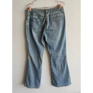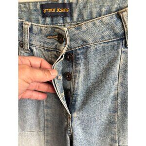 ARMOR JEANS Womens Wide Leg Button Fly Quilted Patchwork Denim Jeans Blue Sz L