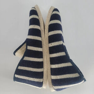 Classic Breton stripe patternSoft wool outer with fuzzy wool interiorComfortable crepe sole that’s suitable for small trips outsideSlip on comfort