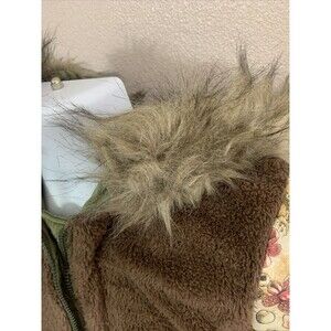 ARMY SHELTER MAD YOUR FAME DOWN Jacket Faux Fur Parka Coat SMALL sz GREEN