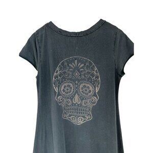 AROMA Sugar Skull Back Design Dress Boho Hipster Charcoal Gray Cotton Maxi
