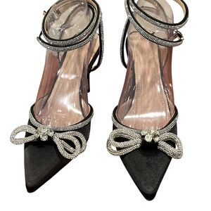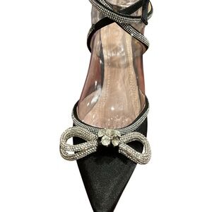 ARQA New Black Satin & Rhinestone Strappy Bow Heels Euro Size 40 (9) (FLAW)