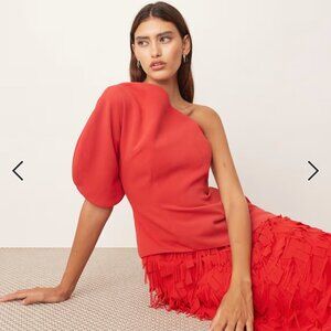 ARRANGE sculptural one shoulder textured hybrid maxi dress in red