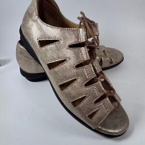 ARRAY Gold Metallic Lace Up Gladiator Sandals Cut Out Open Toe 7.5M