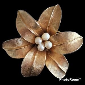 ART Arthur Pepper Gold Tone Faux Pearl Vintage Flower Brooch Pin