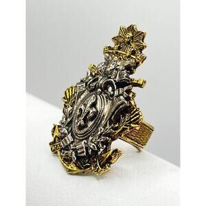 ART Arthur Pepper Signed Ring Shield Crest Gold And Silver Vintage Jewelry SZ 3