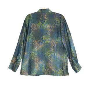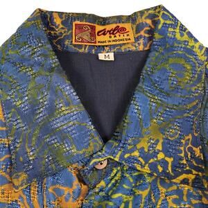 ART BATIK Button Up Blouse Women M Blue VTG Retro Unique Handmade Romantic Y2K