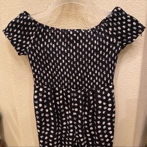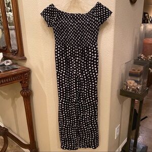 Pre-owned in great condition with no rips or stains. Super adorable girls black and white polka dot jumpsuit. Comes from smoke and pet free home.