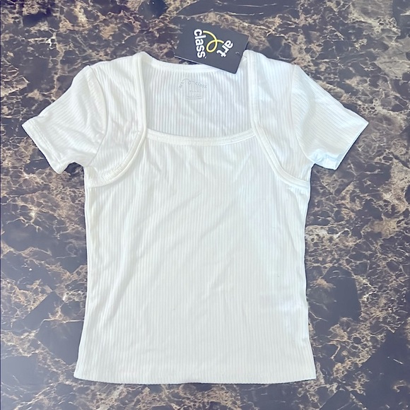 Girls White Ribbed Athletic/Ballet Top from Art Class