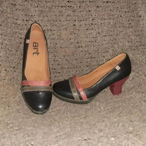 ART COMPANY- Black Leather Strappy Pump w/Rubber Block Heel-Sz 37-Near Mint