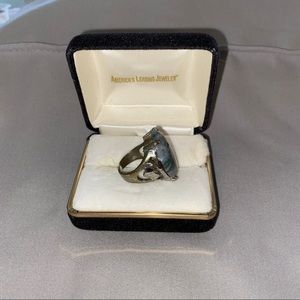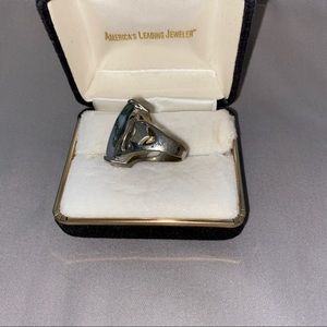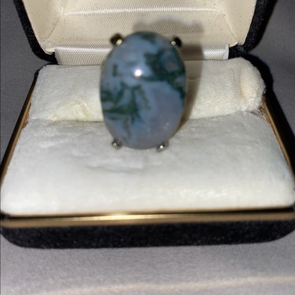 Beautiful Bluish Gray in color AGATE ART DECO RING SIZE6” 925