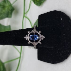 ๐ Stunning Lab Created Light Sapphire n Dimond Silver Rhodium Plating Ring ๐ Mirror Mirror ๐