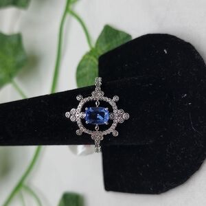 ๐ Stunning Lab Created Light Sapphire n Dimond Silver Rhodium Plating Ring ๐ Mirror Mirror ๐
