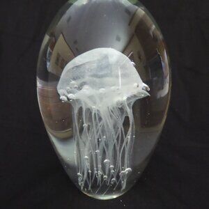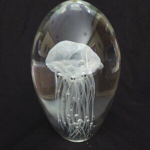 ART GLASS DYNASTY GALLERY WHITE JELLYFISH GLASS PAPER WEIGHT (NEW IN BOX)