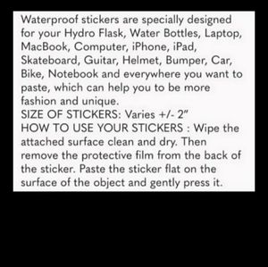 Waterproof stickers meant to go on most surfaces.