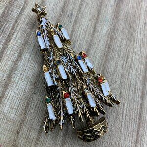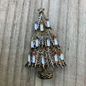 ART Vintage Gold Tone Holiday Christmas Tree Brooch Pin