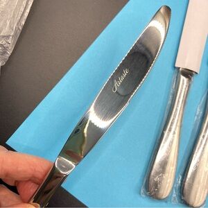 ARTASTE Rain Knives Set Of 4 NEW Rain Stainless Steel. Set of 4 knives are new without tags, still in original plastic bags, only removed for photos. 18/20 Stainless Steel serrated knives are beautiful and shiny classic design.