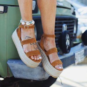 ARTEMISIA Platform heeled leather suede sandals, wedge