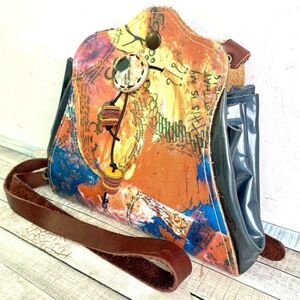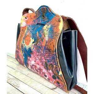 ART HANDCRAFTED MULTI COLOR GENUINE LEATHER PURSE SHOULDER BAG HANDBAG X-BODY