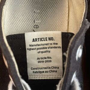 The Article Number 1007 shoe features a premium canvas upper, rubber toe cap, metal eyelets, and a rubber vulcanized sole.