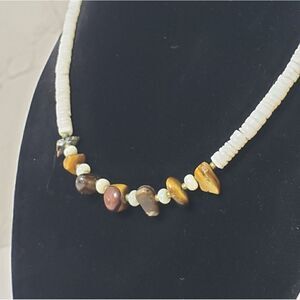 ARTISAN Beach Shell & Tumbled Stone Beaded Necklace Surfer Travel Ocean Unisex
