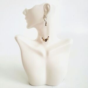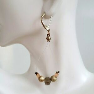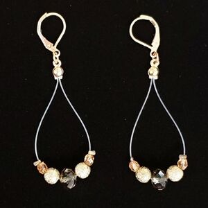 Clear loops with pale olive green, pink and gold colored beads. Gold like hardware. 2.75"