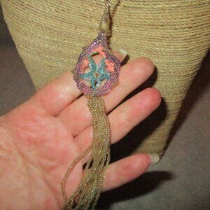 ARTISAN Beaded STARFISH Pendant NECKLACE Nautical OCEAN Sea STAR Dangle BOHO 19"