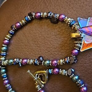ARTISAN Dichroic Irridescent Glass Arrow Pendant Glass Beaded Necklace