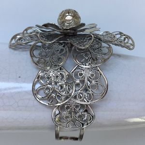 ARTISAN Metallic Silver Floral Filigree Cuff Bracelet