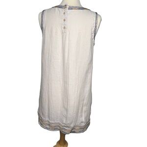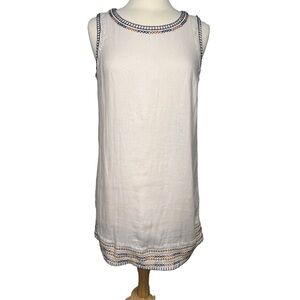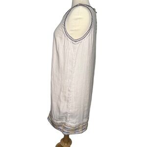 ARTISAN NY 100% Linen Shift Dress Embroidered Trim Size Small Lightweight Midi