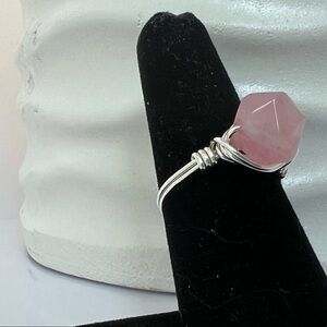 Natural Rose Quartz star cut crystal sterling silver wire wrap ring