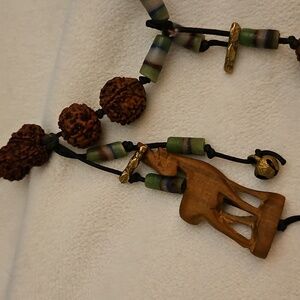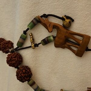 ARTISAN Rudrashka Nut Goat Head Carved Antelope Glass Beaded Protection Necklace
