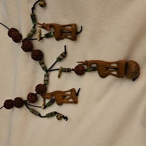Embrace nature with this handcrafted wooden antelope necklace. Featuring rich brown tones, this unique piece adds a rustic charm to any outfit.