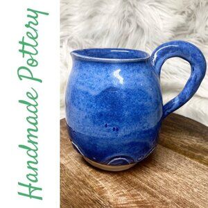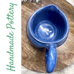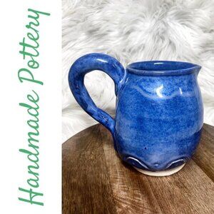 ARTISAN SIGNED HANDMADE GLAZED CERAMIC FARMHOUSE PITCHER Blue R. Turiel
