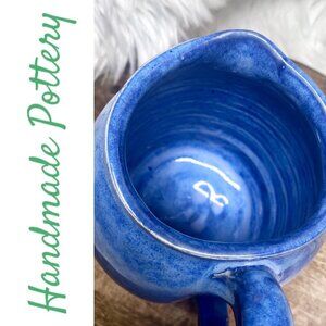 ARTISAN SIGNED HANDMADE GLAZED CERAMIC PITCHER Blue R. Turiel