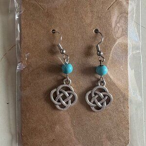 ARTISAN - Silver Tone Celtic Knot Charm Bead Earrings - 1.5”