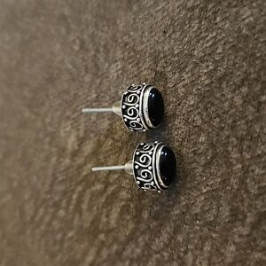 ARTISAN Sterling Silver Black Onyx Scroll Post Earrings