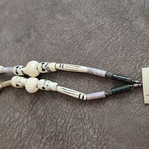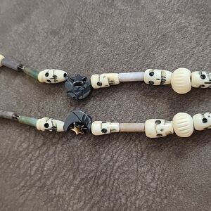 Carved Bone skull and jade beads.
