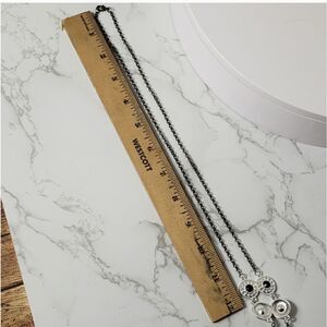 Black Bolo Chain with Silver-tone dosc connectors and a dramatic pendant of faceted resin faux gems