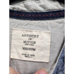 Artistry In Motion Mens Shirt Medium Gray Chambray Cotton Long Sleeve Button Up