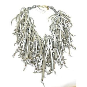 ARTIZAN Joyeria Artesenal by Keren Leather Fringe Boho Bib Necklace Gold Silver