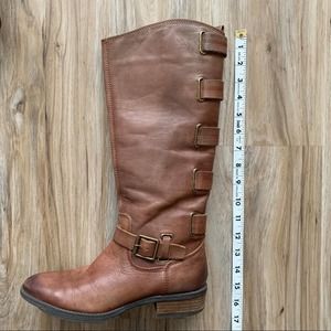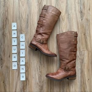 tall buckle smooth ride riding equestrian low heel stacked brown tan chocolate comfort