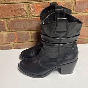 ARTURO CHIANG SHORT BlACK LEATHER SLOUCH BOOTS