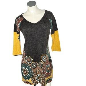 ARYEH Anthropologie Boho Geometric Artsy Mini Sweater Dress 3/4 Sleeves Size S