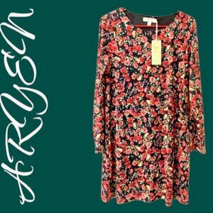 Size Large Bust: 34" & Length: 35". All measurements are approximate and taken laying flat. The colors of this beautiful dress are red,pink,yellow,black,& Green.