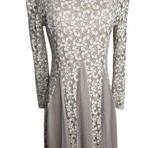 AReve Beige Floral Lace Tulle Dress Edwardian Cottagecore Bohemian Whimsy Sz M